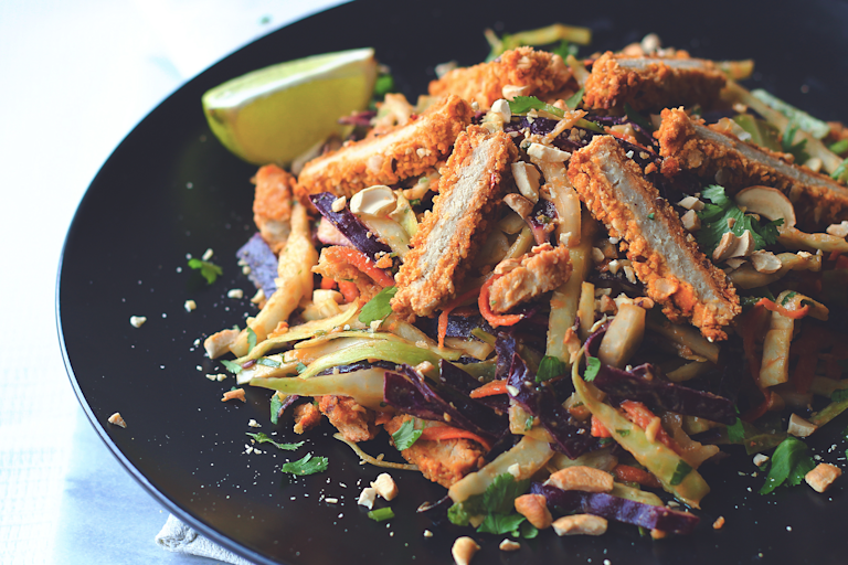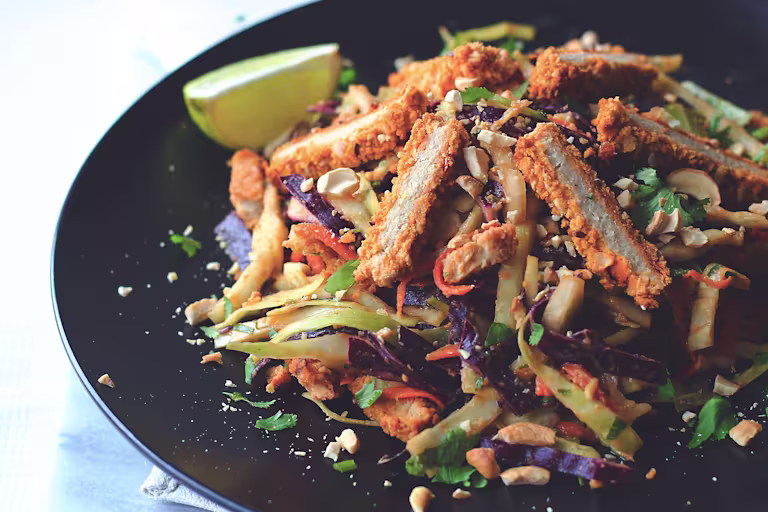 - Spicy Chopped Thai Chickenless Salad – Inspired by the flavors of Thai cuisine, this salad is perfect for a light lunch or dinner. Made with Quorn Vegan Meatless Chipotle Cutlets and a homemade peanut sauce dressing, this recipe is a winner.