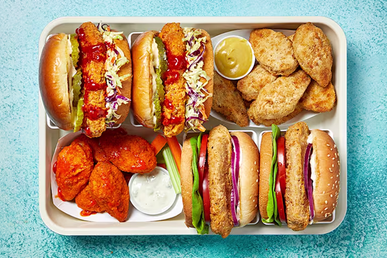 All three new products have a chicken-style protein core coated with extra crispy breading that you won’t believe is not real chicken!