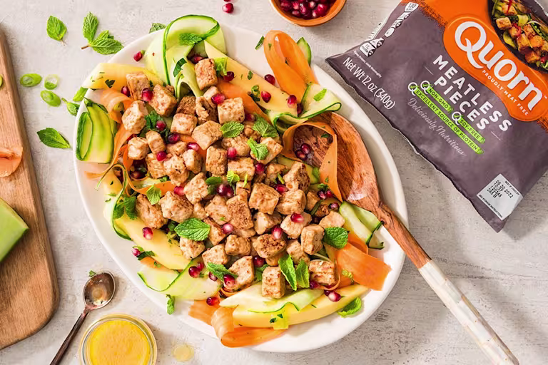A tasty and nutritious salad is all you need for when you're trying to stay healthy or when you just don't have time. Whether you're after a comforting winter salad or a refreshing recipe for the summer, our delicious salad recipes are full of inspiration and will take you through the seasons. From a Quorn Vegan Papaya Salad with Apple Balsamic to a vibrant Brazilian Salad with Quorn Meatless Fillets. These satisfying and filling salad recipes are packed with protein to delight your tastebuds.